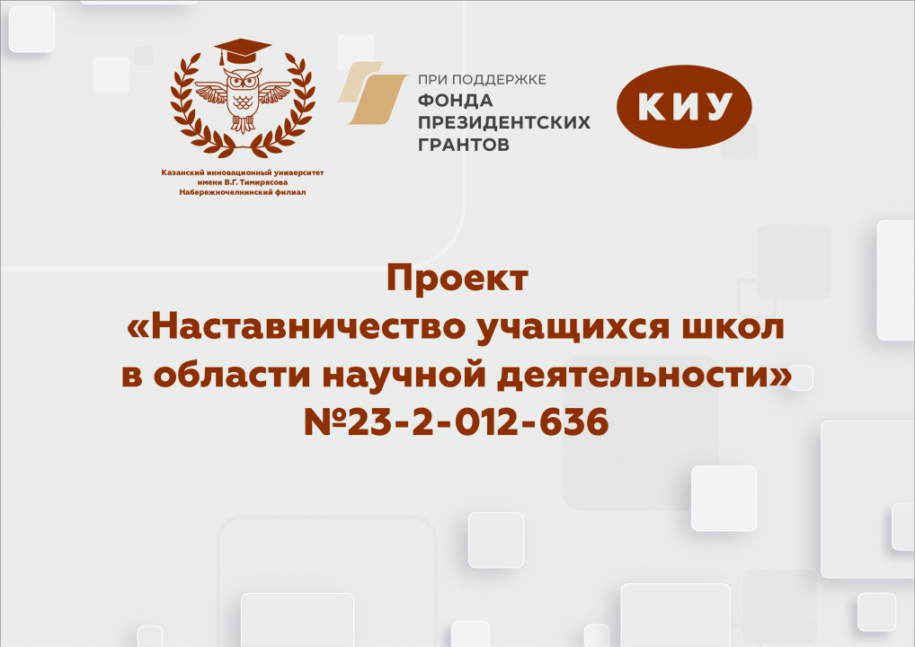 2023 год в России был объявлен Годом педагога и наставника. Преподаватели Набережночелнинского филиала Казанского инновационного университета им. В.Г.Тимирясова в период с сентября по декабрь при поддержке Фонда Президентских грантов реализовали проект «Наставничество учащихся школ в области научной деятельности» №23-2-012-636. Целевой аудиторией в рамках проекта стали школьники автограда в возрасте от 14 до 17 лет.
