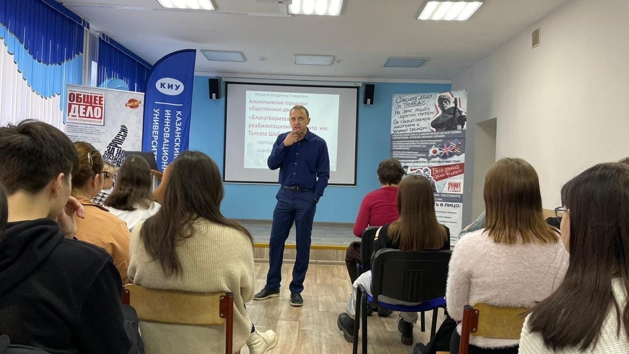 Студенты Альметьевского филиала «Колледжа КИУ» на протяжении недели прослушали спецкурс по профилактике и освобождению от зависимостей из уст преподавателя Альметьевского городского общественного движения «Благотворительный реабилитационный центр им. Талгата Шайхуллина»— Фархеева Владимира Анваровича.