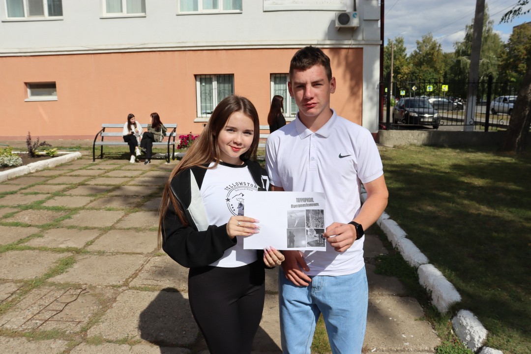Не остались в стороне от акции и студенты нашего филиала. Участники акции набрали воду в ладони и полили из рук цветы – таким образом символически участники поделились водой с теми, кого уже нет. Также ребята-волонтеры раздали памятки о противодействии экстремизму и терроризму.