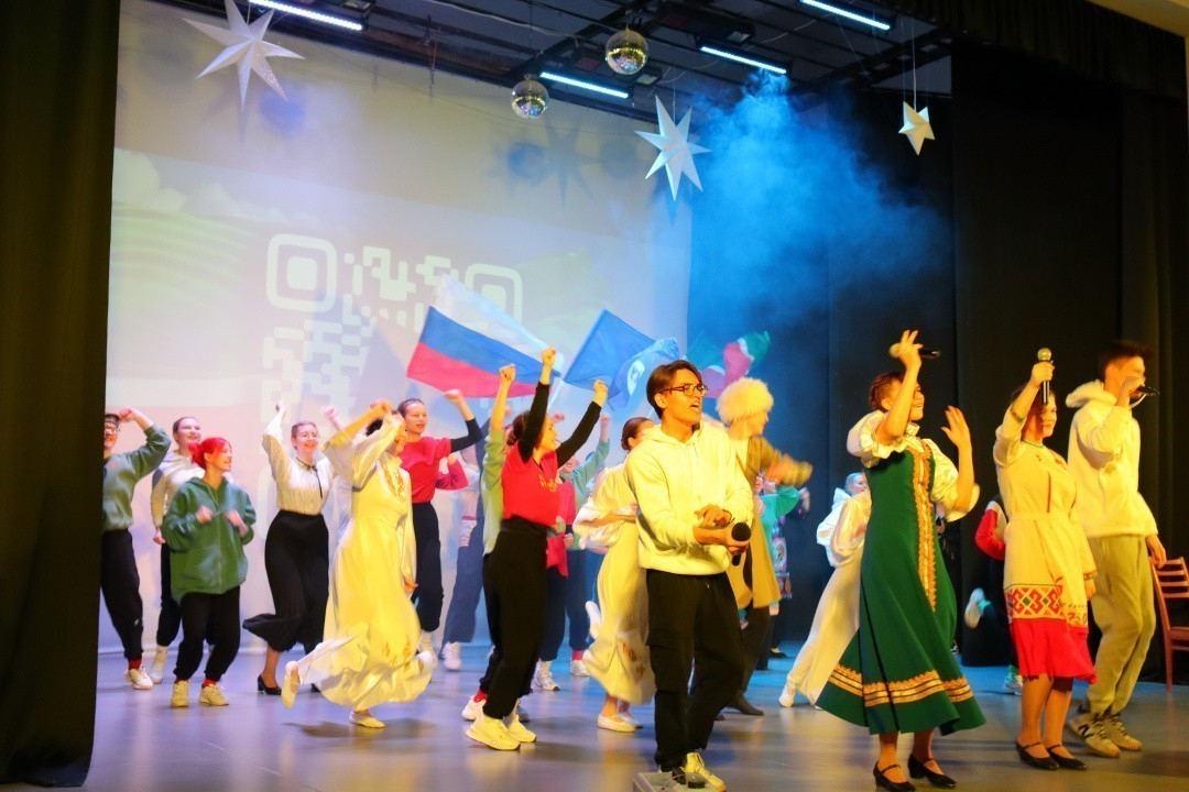 Студенты Чистопольского филиала КИУ продемонстрировали увлекательную программу, основными мотивами которой стали необходимость уважения к своей истории, к народностям, населяющим нашу великую страну, а также важность единения народов многонациональной России. Яркие танцевальные, вокальные и театральные номера органично вплелись в единый сюжет, наполненный глубоким смыслом. Выступление студентов Чистопольского филиала прошло невероятно красиво, тонко, душевно, но в то же время зажигательно. Музыка, танцы и энергия ребят не оставили равнодушными зрителей и членов жюри.