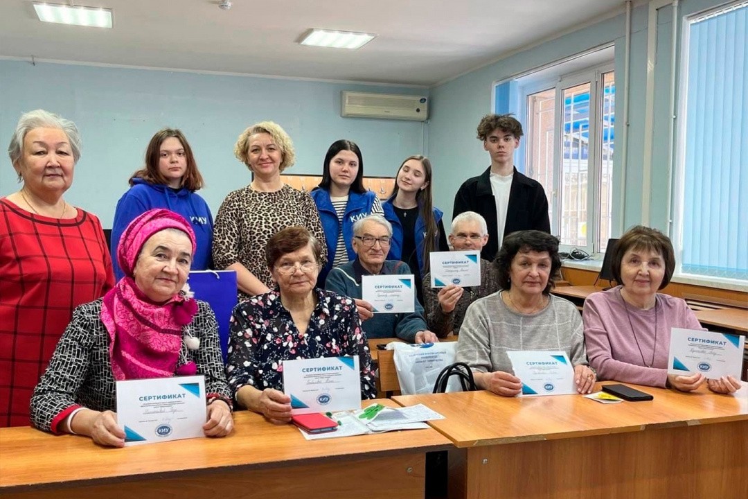 На вручении сертификатов об успешном прохождении курсов радости пожилых людей не было предела. Они поделились своими вновь обретенными знаниями, обменялись поздравлениями с предстоящим праздником, пообщались с уже полюбившимися студентами-волонтерами и договорились продолжить их неординарную дружбу поколений.